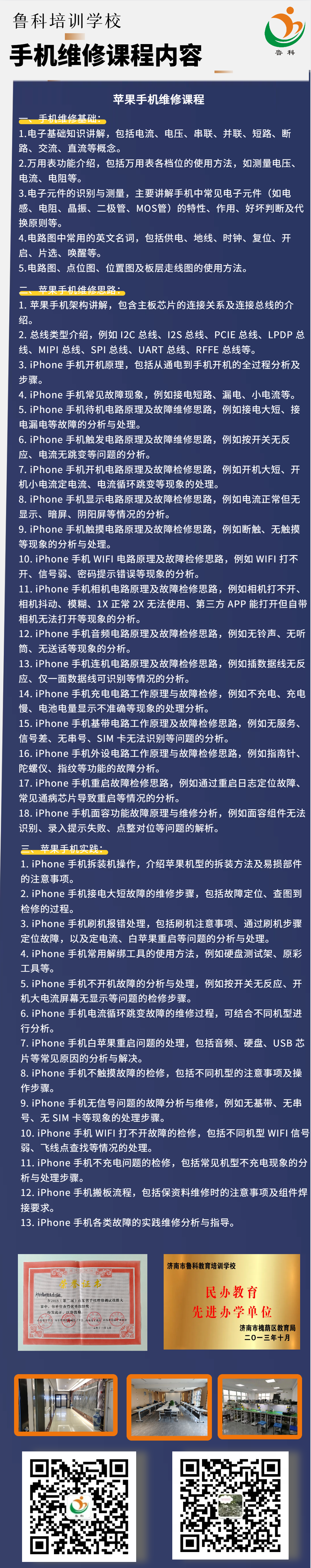 2、由鲁科学校安置就业,手机维修入行后,安置到我校合作的维修企业就业,从事高级技师的职业,工资高还体面。
